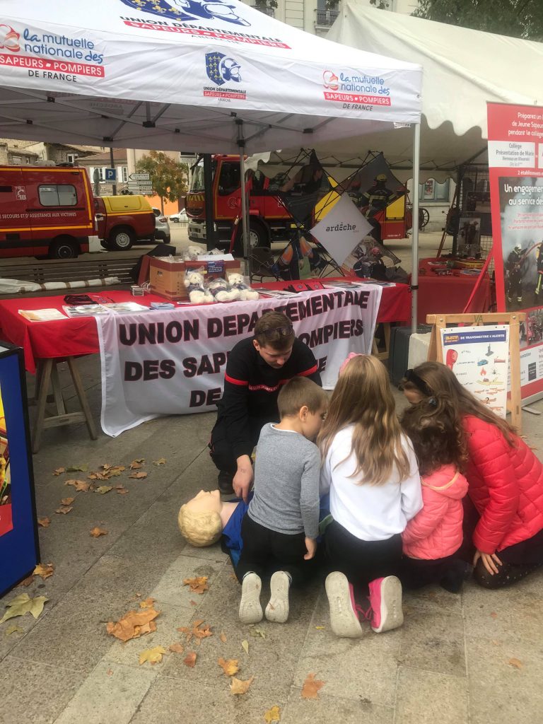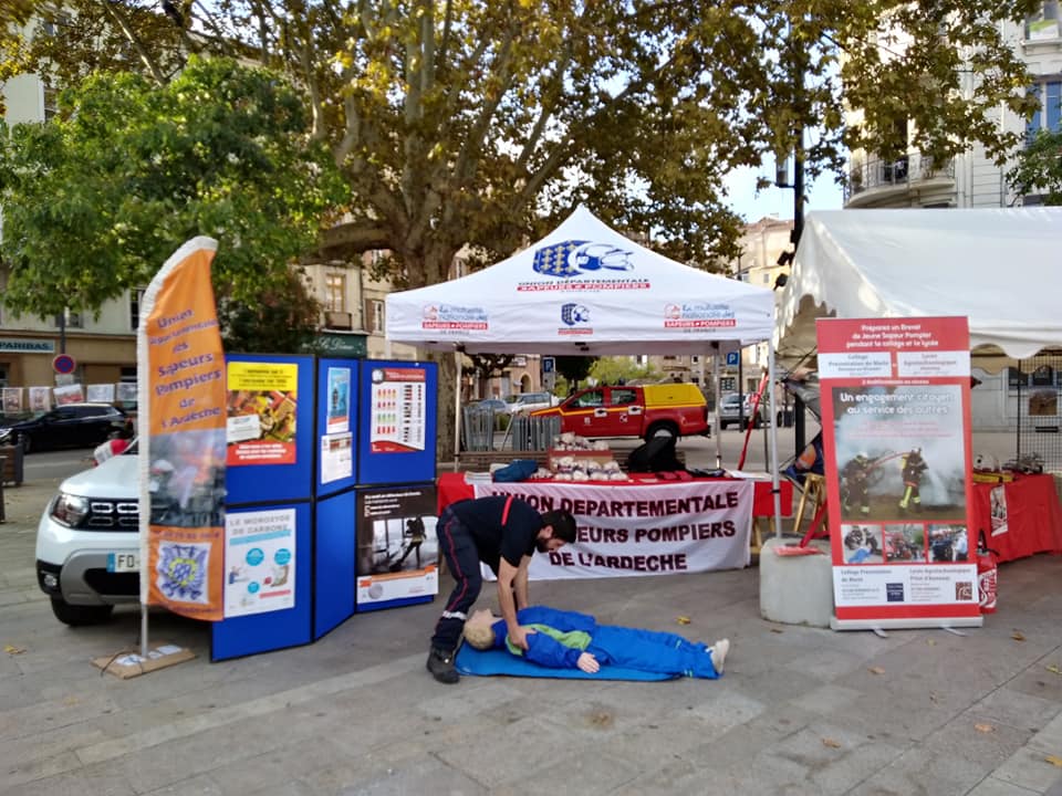 Au programme pour nos deux formateurs, initiation aux gestes de premiers secours avec notamment la présence de nombreux enfants venus essayer le massage cardiaque. Ce moment de partage et d’échange a permis aux visiteurs de poser leur question sur les formations dispensées par l’UDSP07.